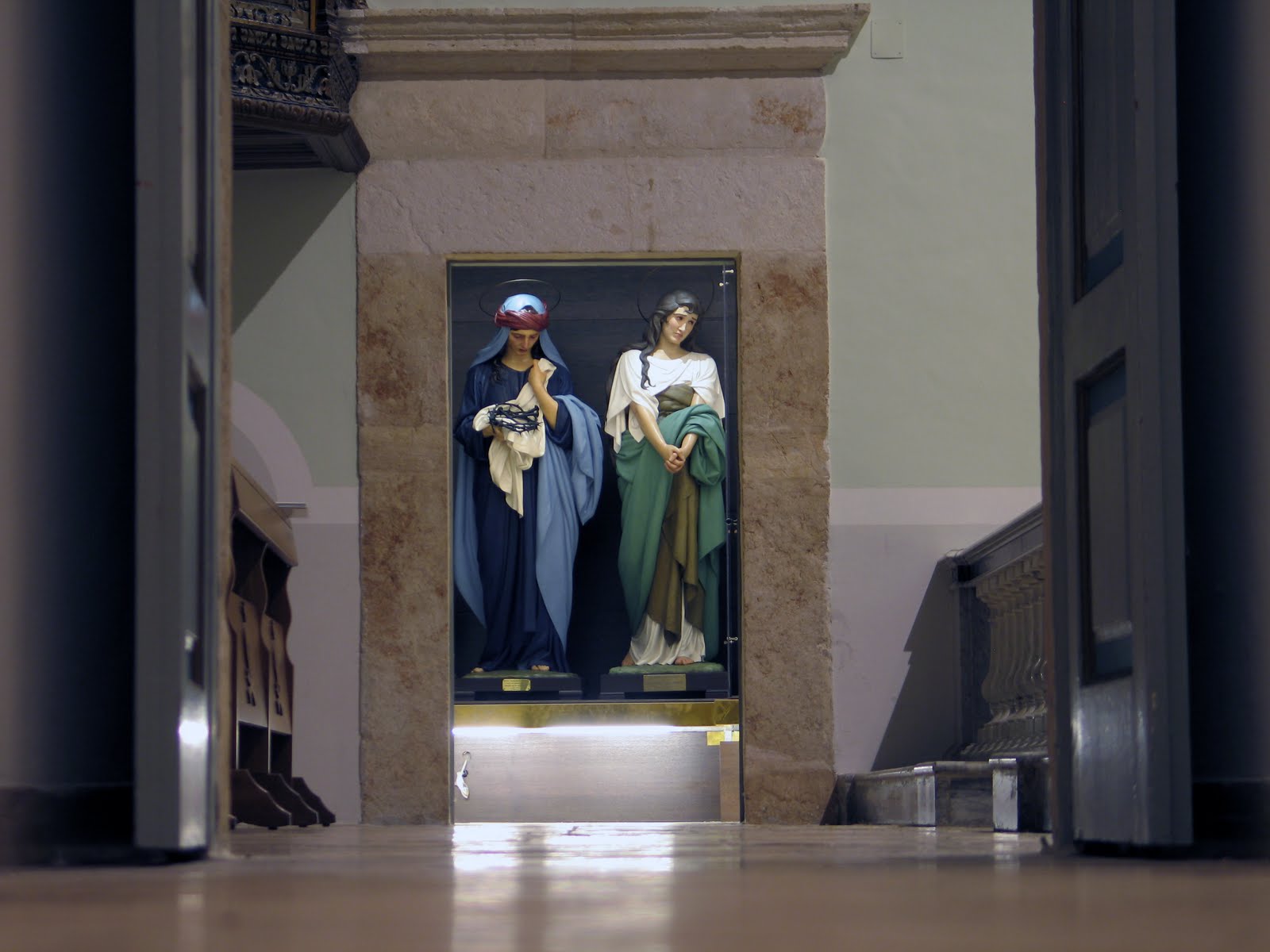 Nel vano a sinistra del presbiterio sono conservate le statue, di proprietà della Confraternita della Morte, che vengono portate in processione il Sabato Santo, realizzate in cartapesta tra il 1906 e il 1956 dall'artista molfettese Giulio Cozzoli (1882-1957) in sostituzione delle più antiche statue ormai completamente deteriorate.La statua della Pietà fa eccezione, venne soltanto ritoccata dall'artista e si trova al centro dello spazio.